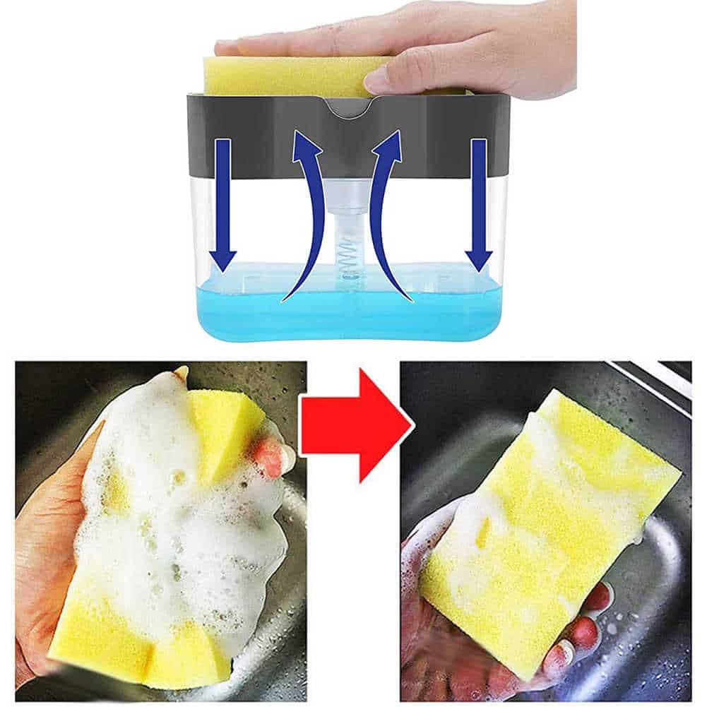 כל מה שצריך לעשות הוא להניח את ספוג שטיפת הכלים מעל הדיספנסר וללחוץ על הספוג – דיספנר הפלא כבר יעשה את העבודה עבורכם וימשוך נוזל כלים מהכלי.