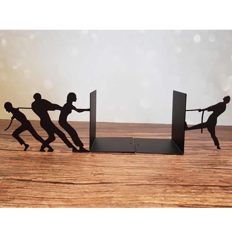 זוג תומכי ספרים מעוצבים ממתכת בעיצוב אנשים מושכים בחבל.