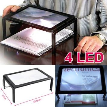 זכוכית מגדלת שולחנית אולטרה גדולה וקלת משקל ,בגודל המדמה דף A4 כמעט שלם ,מעניקה הגדלה של פי 4. בנוסף, ע"מ שתראו ממש ממש טוב ישנה תאורת לד הממוקמת בכל ארבעת פאות המגדלת, המופעלת באמצעות זוג סוללות AAA (לא כלולות).