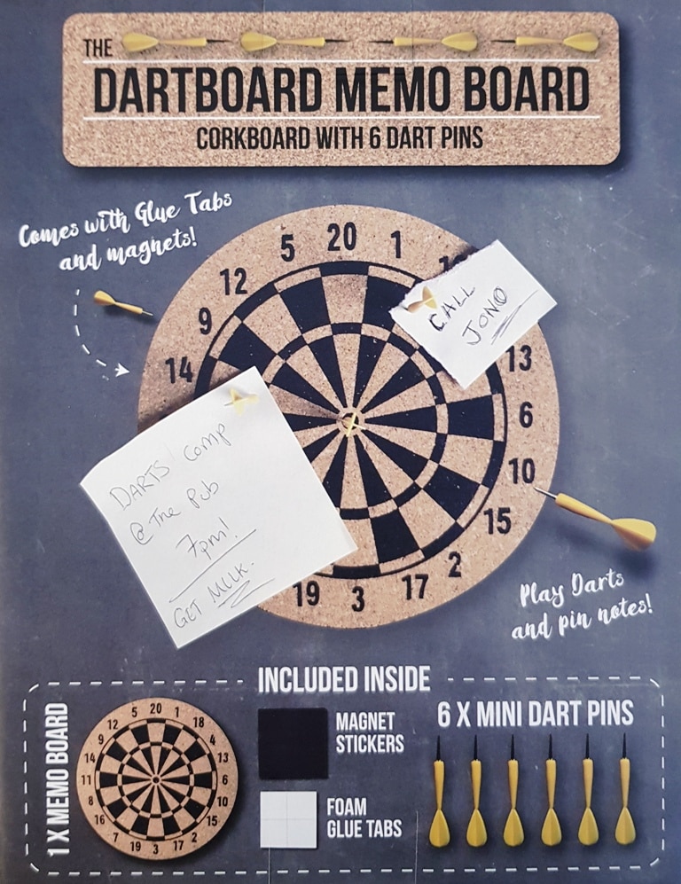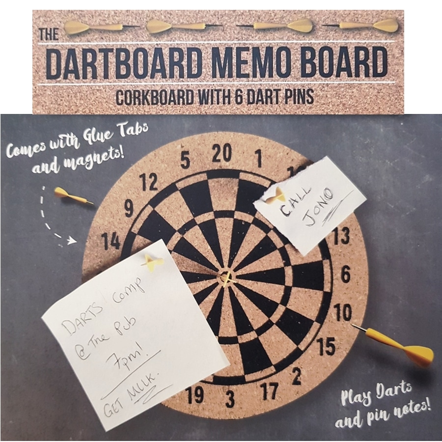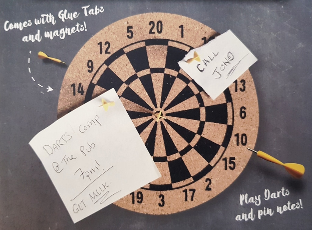 קבלו פתרון גאוני ומעוצב: לוח שעם בעיצוב לוח קליעה למטרה בקוטר 15.5 ס"מ + 6 חצים קטנים להצמדת פתקי הממו ללוח השעם