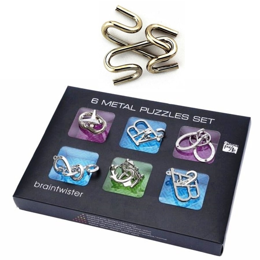 מארז עם 6 משחקי חשיבה מאתגרים ממתכת, מתאים לגילאי 8 עד 99