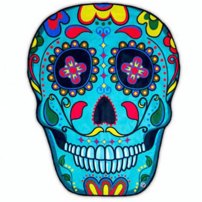 מגבת חוף בעיצוב גולגולת סוכר צבעונית