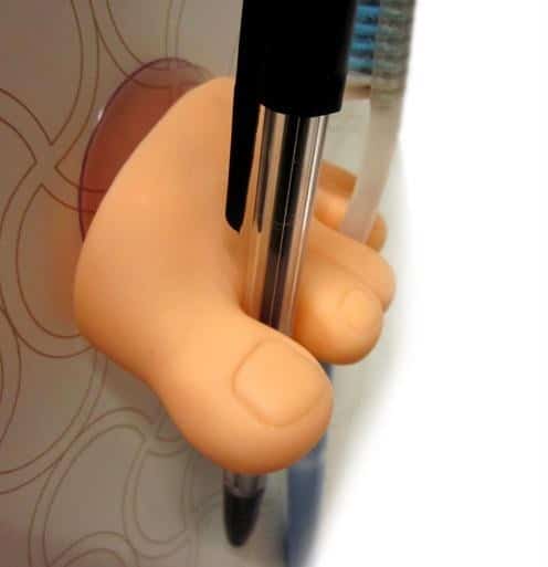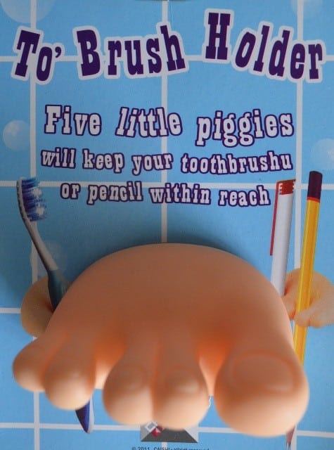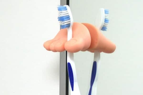 מחזיק 2 מברשות שיניים בעיצוב אצבעות רגליים…כך שלמעשה אתם תוקעים את המברשות בין האצבעות