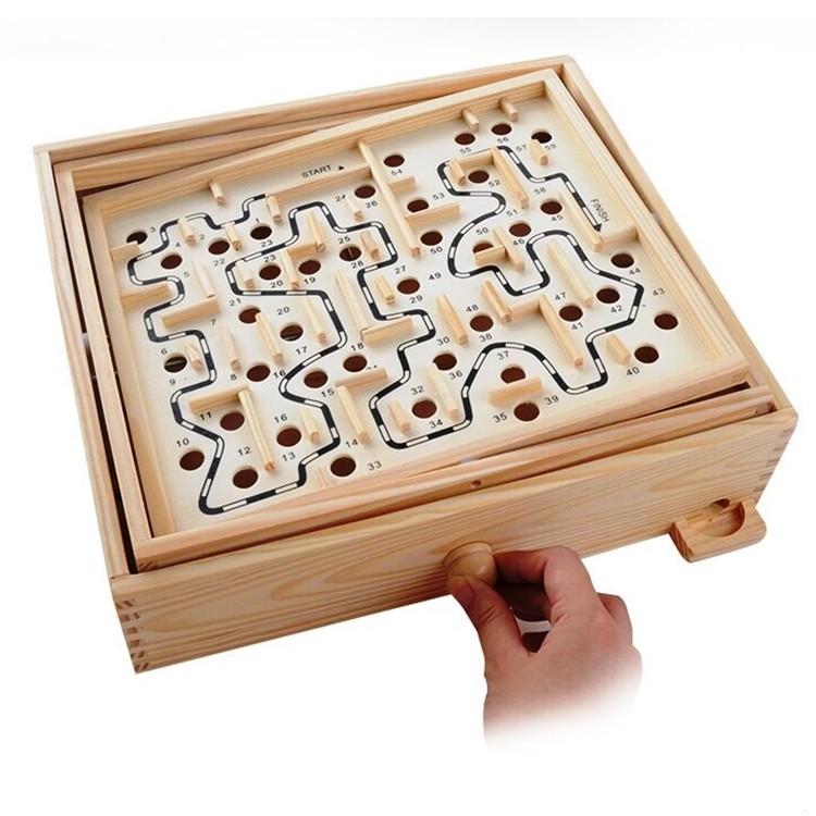 משחק מבוך איכותי עשוי מעץ + 2 כדורים ממתכת
