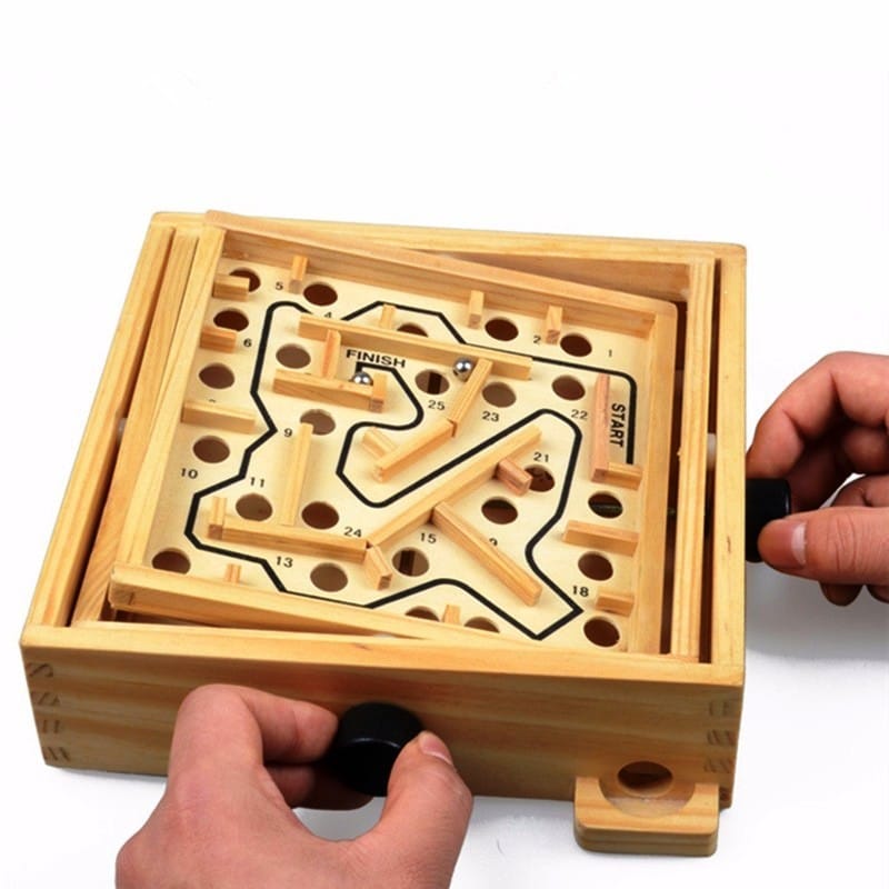 משחק מבוך איכותי עשוי מעץ + 2 כדורים ממתכת
