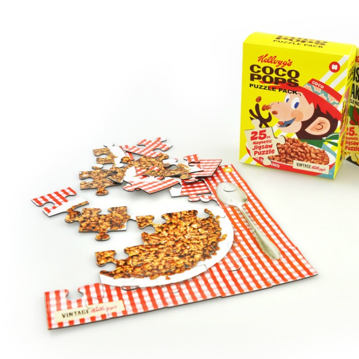 הפאזל מציג תמונת וינטג' של חברת קלוגס המספקת לילדיכם את דגני הקוקו פופס האהובים