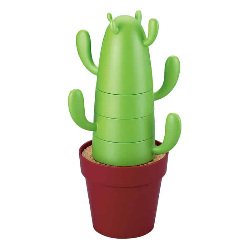 רק כשמתקרבים ונוגעים בקקטוס (אל דאגה! זה ללא קוצים!), מגלים שהוא מתפרק לסט מרהיב של כוסות עם ידיות וכפיות