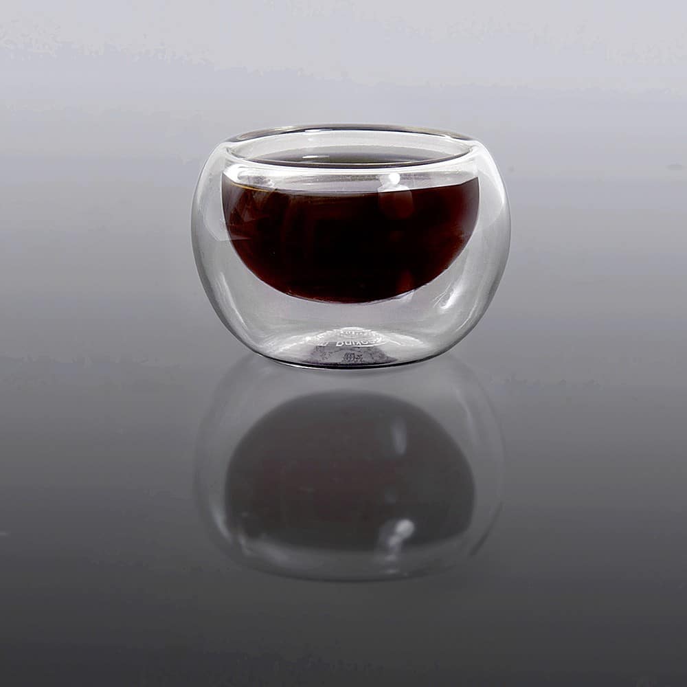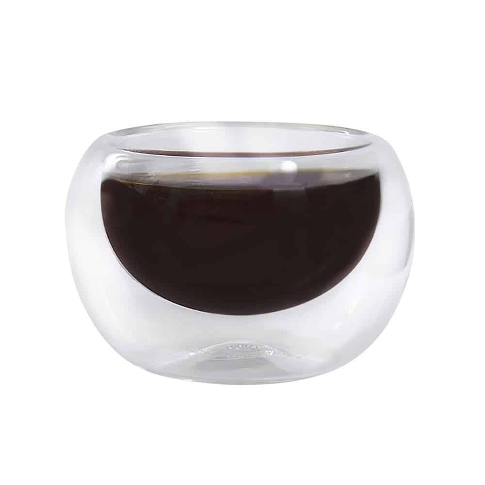 הרשו לנו להציג בפניכם את הכוס האולטמטיבי לשתיית אספרסו קצר או רגיל: כוס טרמית בעלת דופן זכוכית כפולה, כך שדופן הכוס שתחזיקו ביד אינה חמה ותוכלו להחזיק את הכוס בנוחות ובקלות ולהנות מכל לגימה.