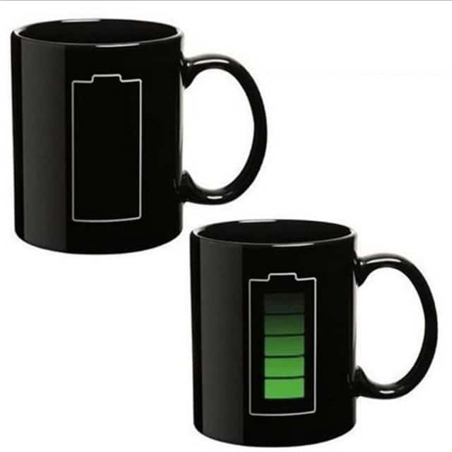 כאשר הספל בא במגע עם מים חמים (קפה/תה/מרק או כל משקה חם), רואים את הסוללה נטענת.