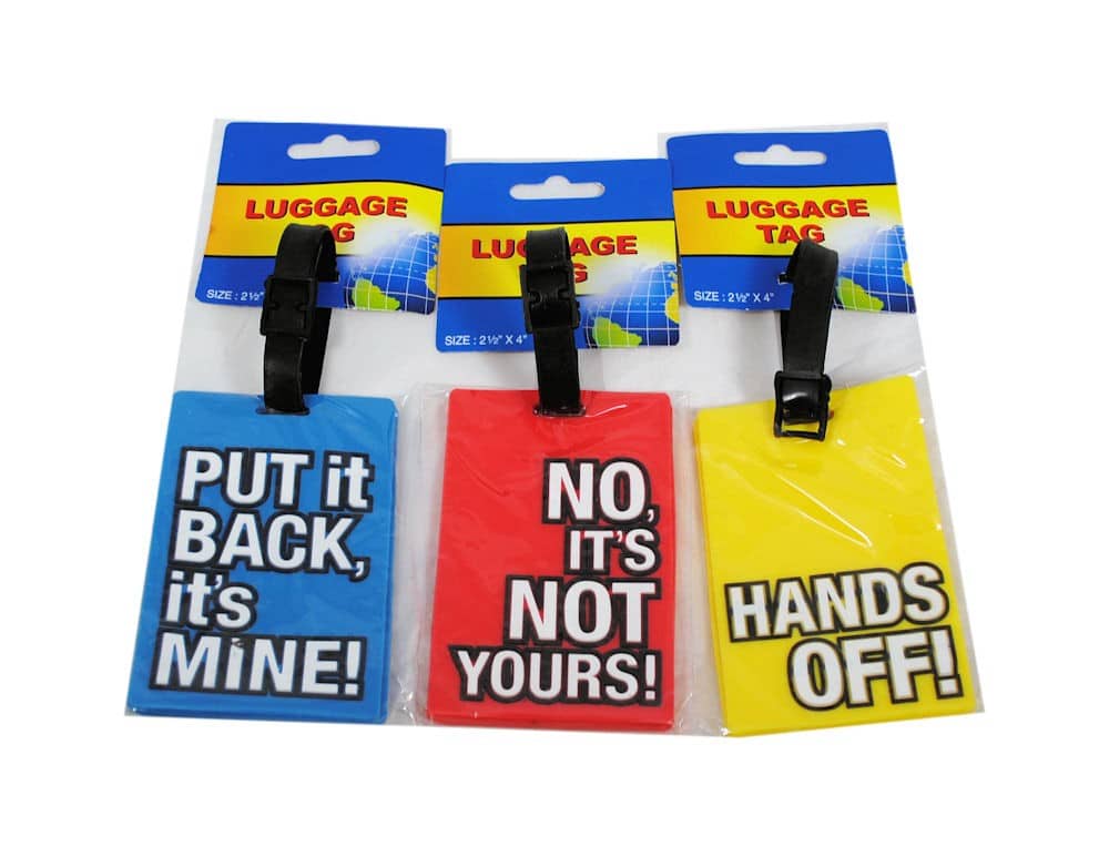 תג מזוודה/תיק ייחודי ומעוצב עם אמרות מצחיקות ומקוריות, כגון: